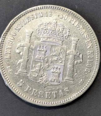 5 pesetas Alfonso XII, 1876 (DEM) – Rey de España