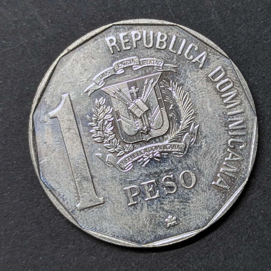 La conexión canadiense: Fíjate en el pequeño símbolo debajo de «PESO» en el reverso. Es la hoja de arce de la Royal Canadian Mint. Es curioso cómo una moneda que celebra la historia caribeña y española fue fabricada en Canadá.