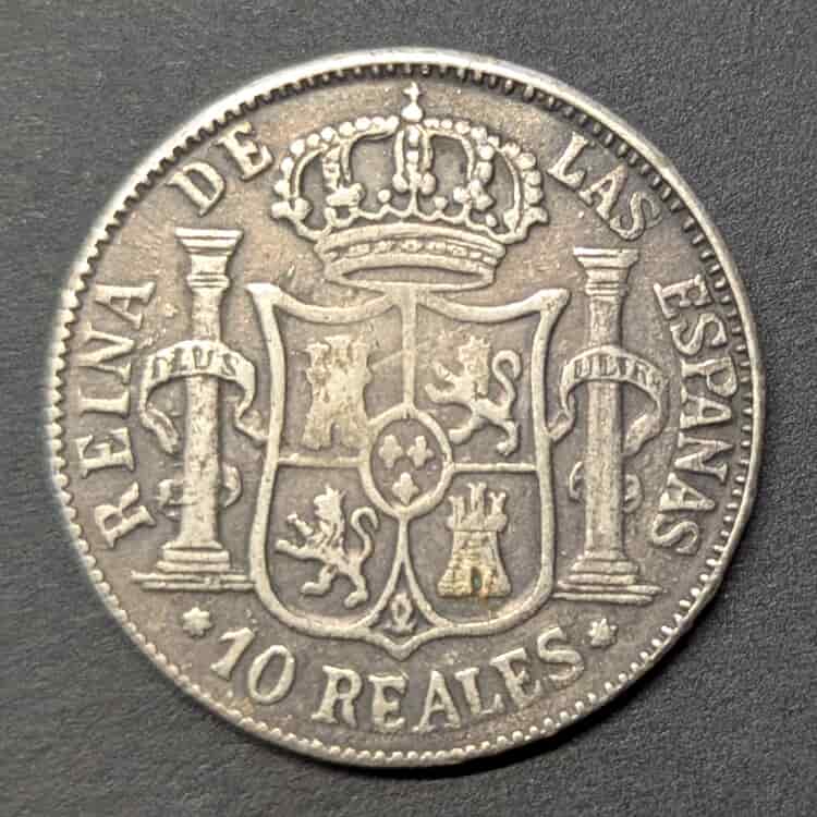 Notas para el coleccionista: El valor de 10 Reales es muy cómodo de coleccionar (tamaño mediano, similar a los antiguos 4 Reales o las posteriores 2,50 Pesetas). Encontrar piezas que no hayan sido limpiadas químicamente hoy en día es difícil; encontrar una que además haya envejecido con esta nobleza es una oportunidad.