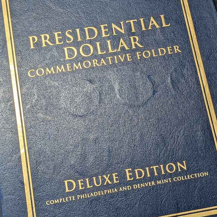 El Programa de Monedas de Dólares Presidenciales (iniciado en 2007) es una de las series más populares y educativas emitidas por la US Mint. Este impresionante álbum Deluxe Edition está diseñado para albergar la colección completa de ambos centros de acuñación principales: Filadelfia (P) y Denver (D).