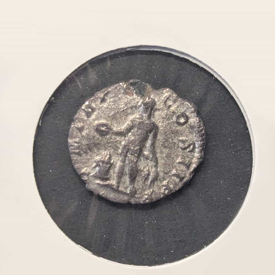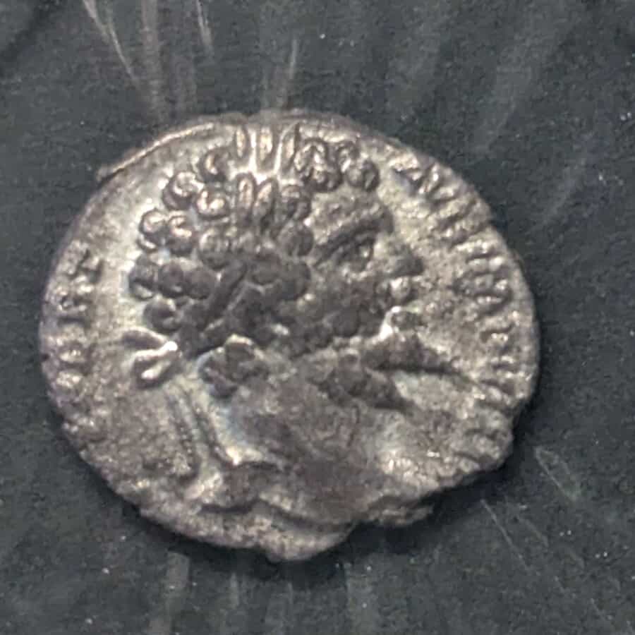 Esta moneda es un clásico ejemplo de la propaganda de los Severos. En el anverso, encontramos un retrato muy expresivo de Septimio Severo, mirando a la derecha y portando la corona de laurel. Su barba rizada y bífida, estilo característico de sus retratos maduros, está bien detallada. La leyenda (parcialmente visible) correspondería a títulos como SEVERVS AVG PART MAX, celebrando sus victorias en Oriente.