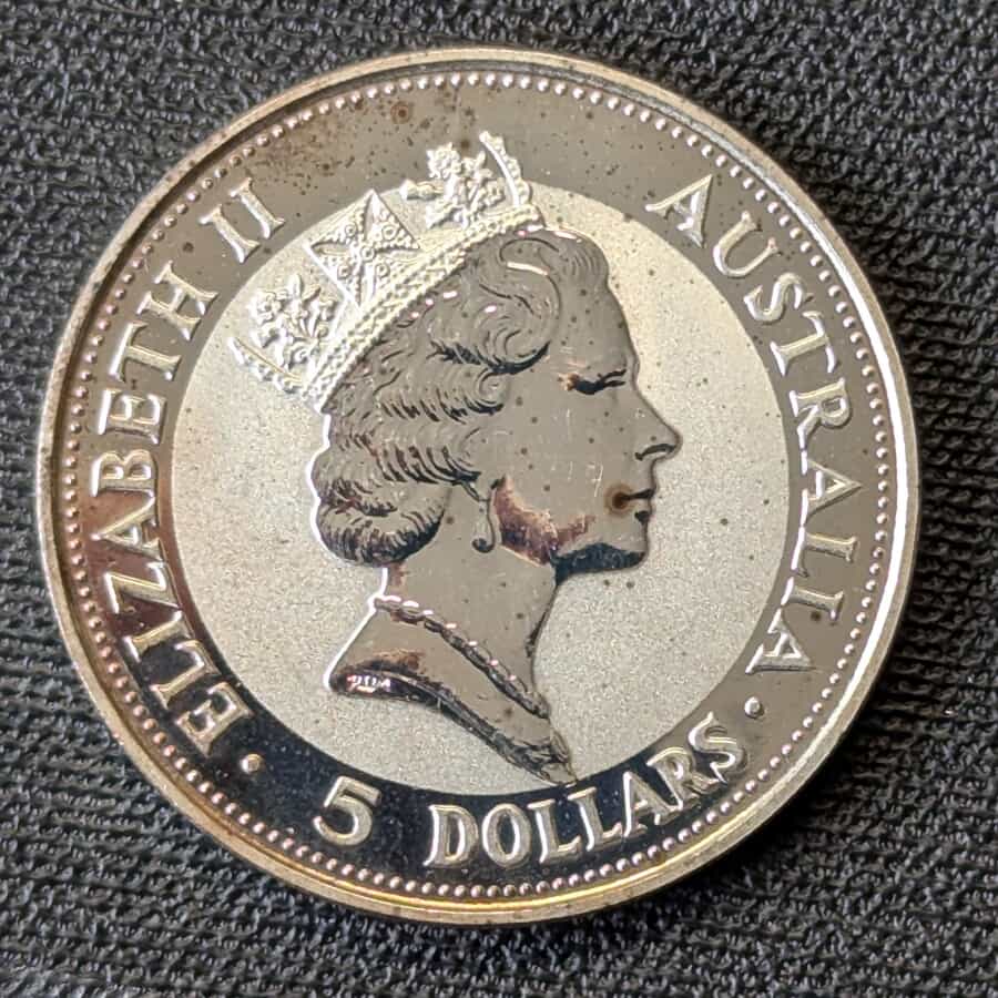 Estado de conservación: SC- (Sin Circular con detalles). La moneda mantiene su brillo original intenso. Nota: Presenta ligeras «manchas de leche» o pátina en el anverso (cara de la Reina), algo extremadamente común en la plata australiana de los 90, que certifica su originalidad.