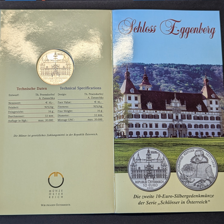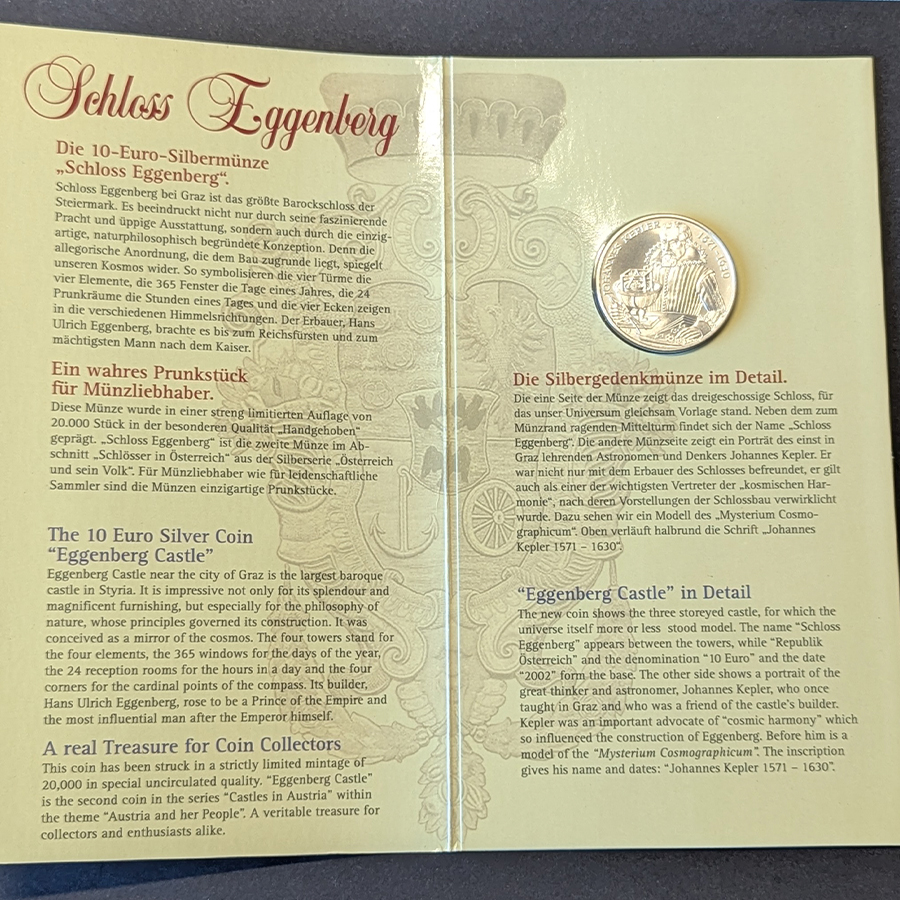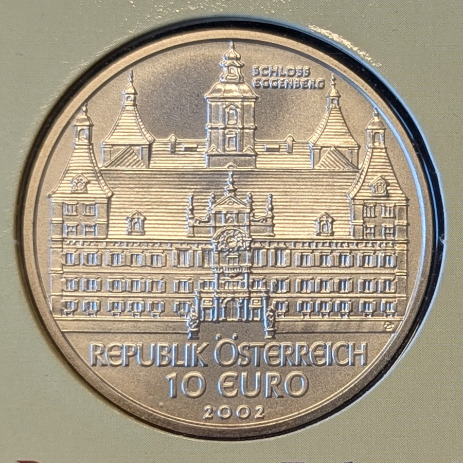 Austria – 10 Euros 2002 «Schloss Eggenberg» | Plata .925 – Edición Limitada (Handgehoben)