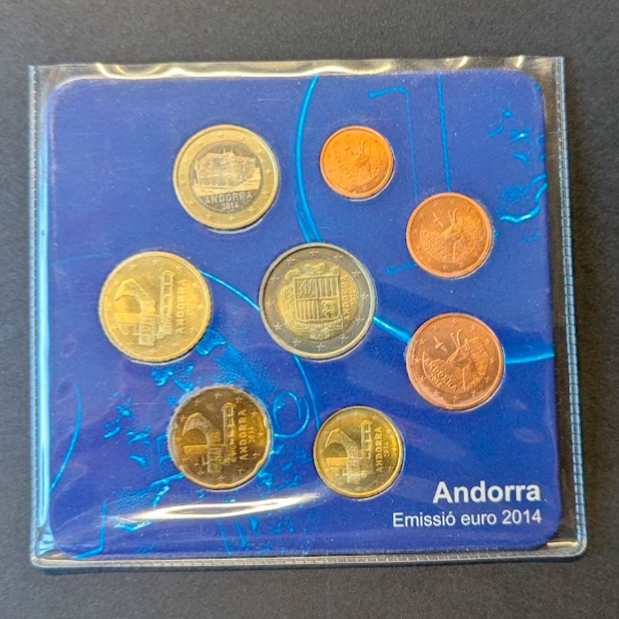 El año 2014 fue histórico para los coleccionistas de euro: tras años de negociaciones, Andorra finalmente emitió sus propias monedas con curso legal. Este blíster contiene la serie completa de 8 monedas de ese año inaugural, lo que lo convierte en un artículo de «Primer Año» (First Year of Issue), siempre los más valorados a largo plazo.