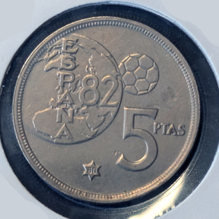 Estamos ante el error más célebre y cotizado de la numismática española de las últimas décadas: el Duro Híbrido del Mundial. Técnicamente, esta moneda es imposible: el anverso presenta la fecha principal 1975 (propia de las primeras emisiones del reinado), mientras que el reverso muestra el logotipo del Mundial de Fútbol España 82 (que solo debería aparecer en monedas fechadas en 1980, 1981 y 1982).