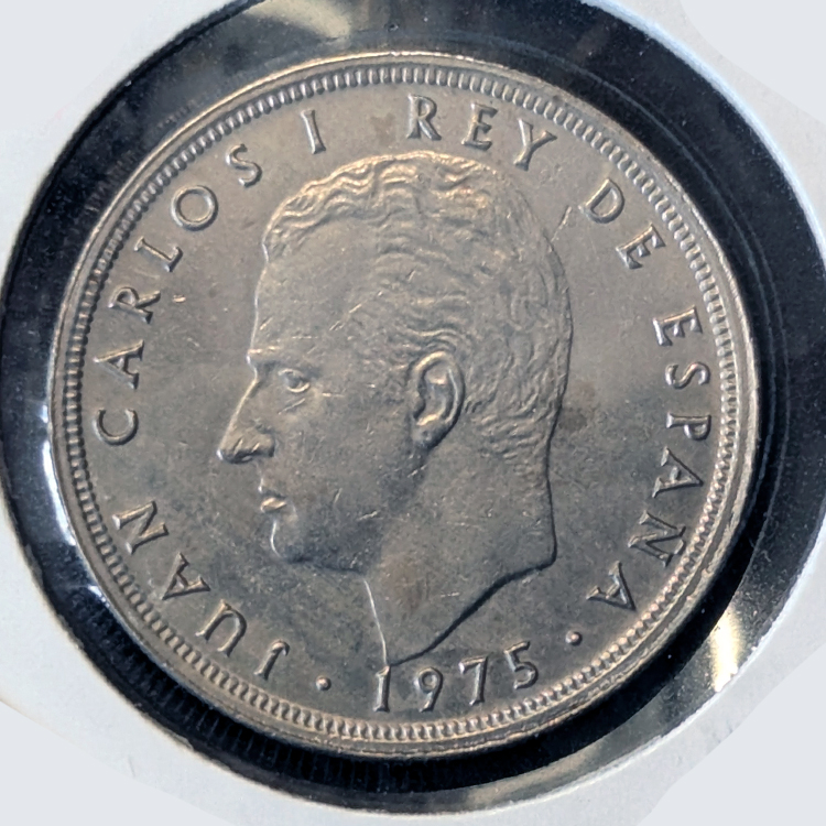 Anverso: Juan Carlos I – Fecha 1975 (Error de cuño)