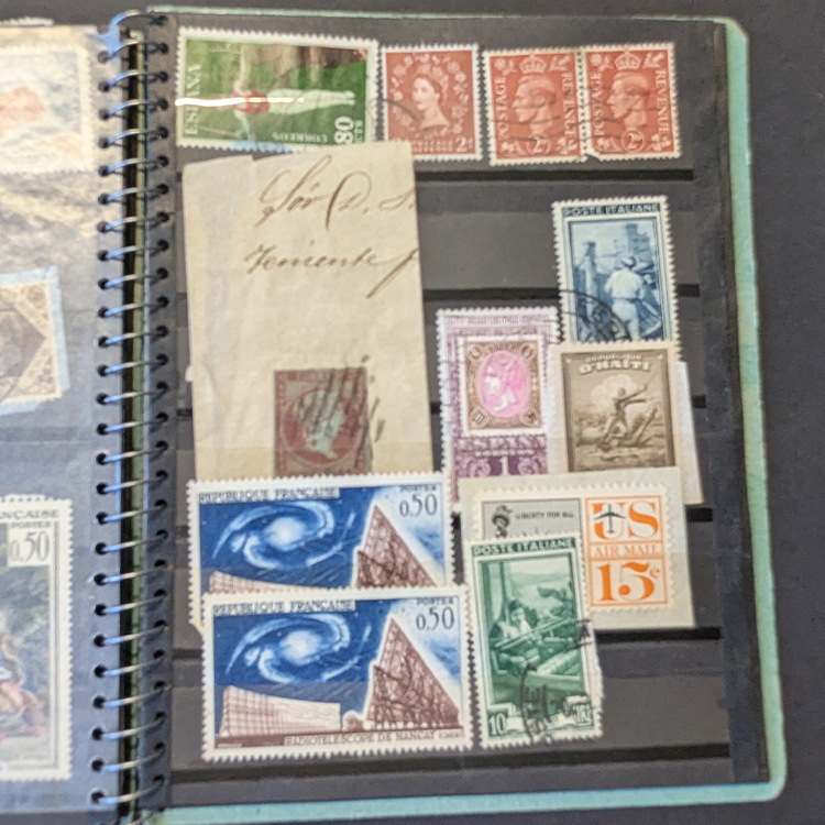 Atractiva selección de sellos de mediados del siglo XX. Destaca una fuerte presencia de sellos franceses de gran formato (serie Arte y Logros Técnicos), junto con clásicos de la serie «Italia al Trabajo», emisiones británicas del Rey Jorge VI y curiosidades sobre fragmento.
