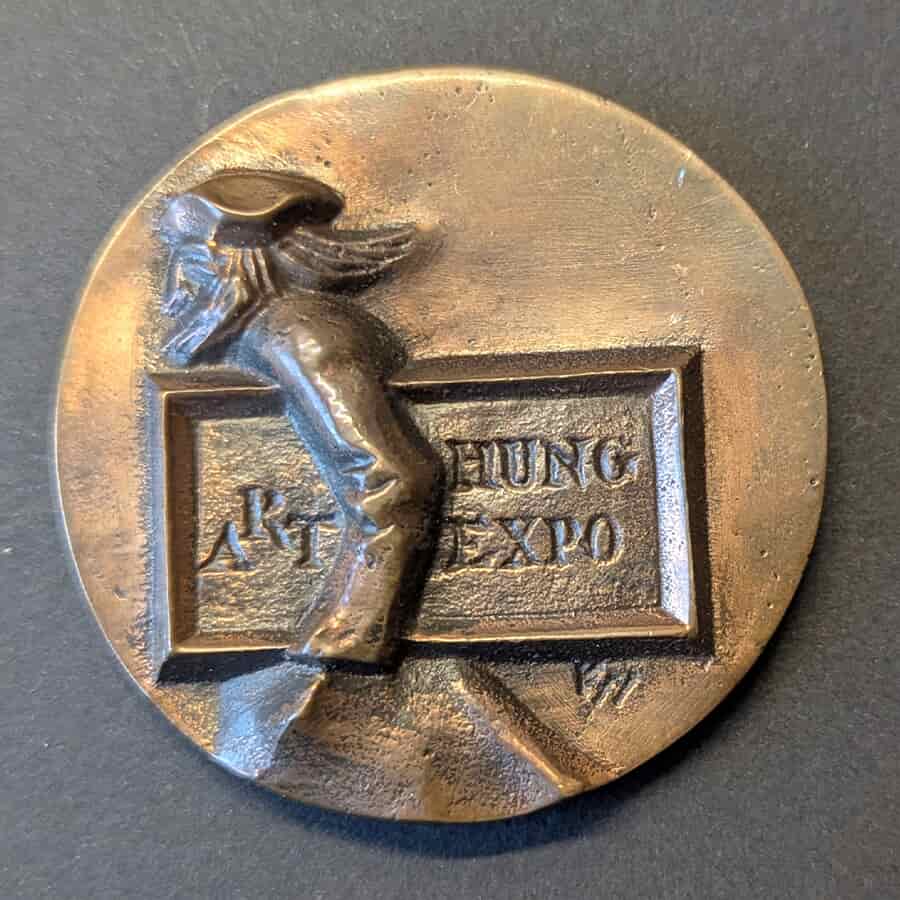 Medalla bronce Art Hung Expo Budapest diseño escultórico relieve