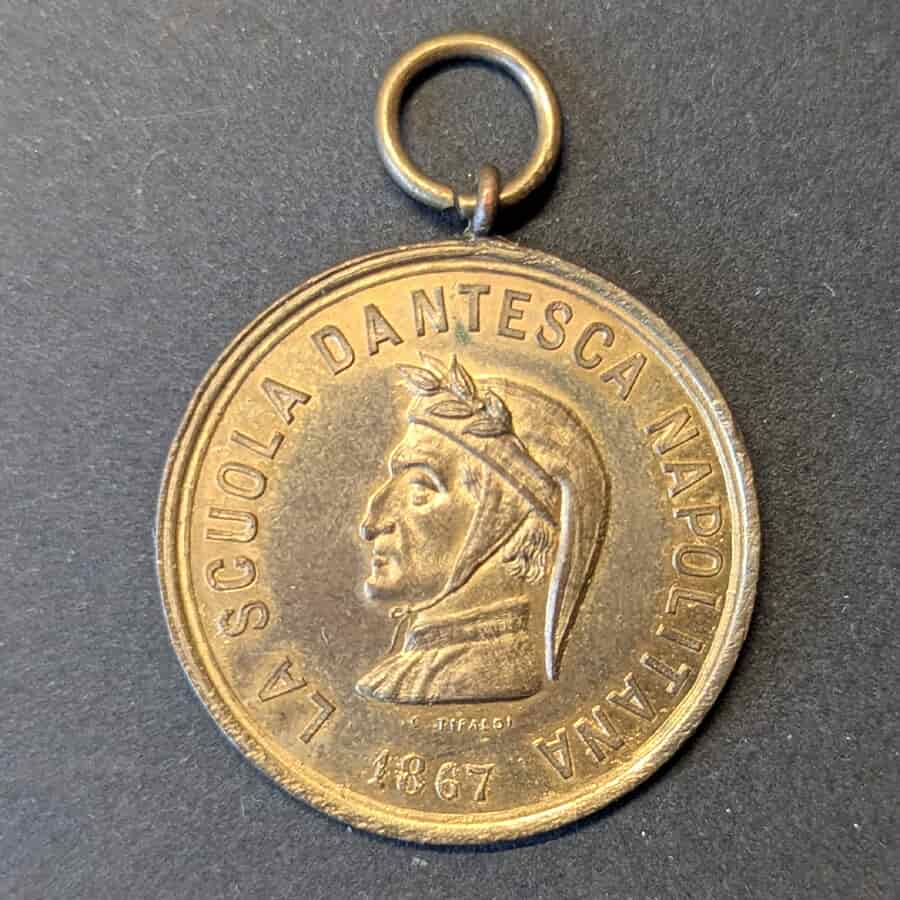 Medalla mérito Scuola Dantesca Napolitana 1867 Dante Alighieri educación popular