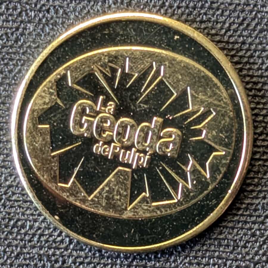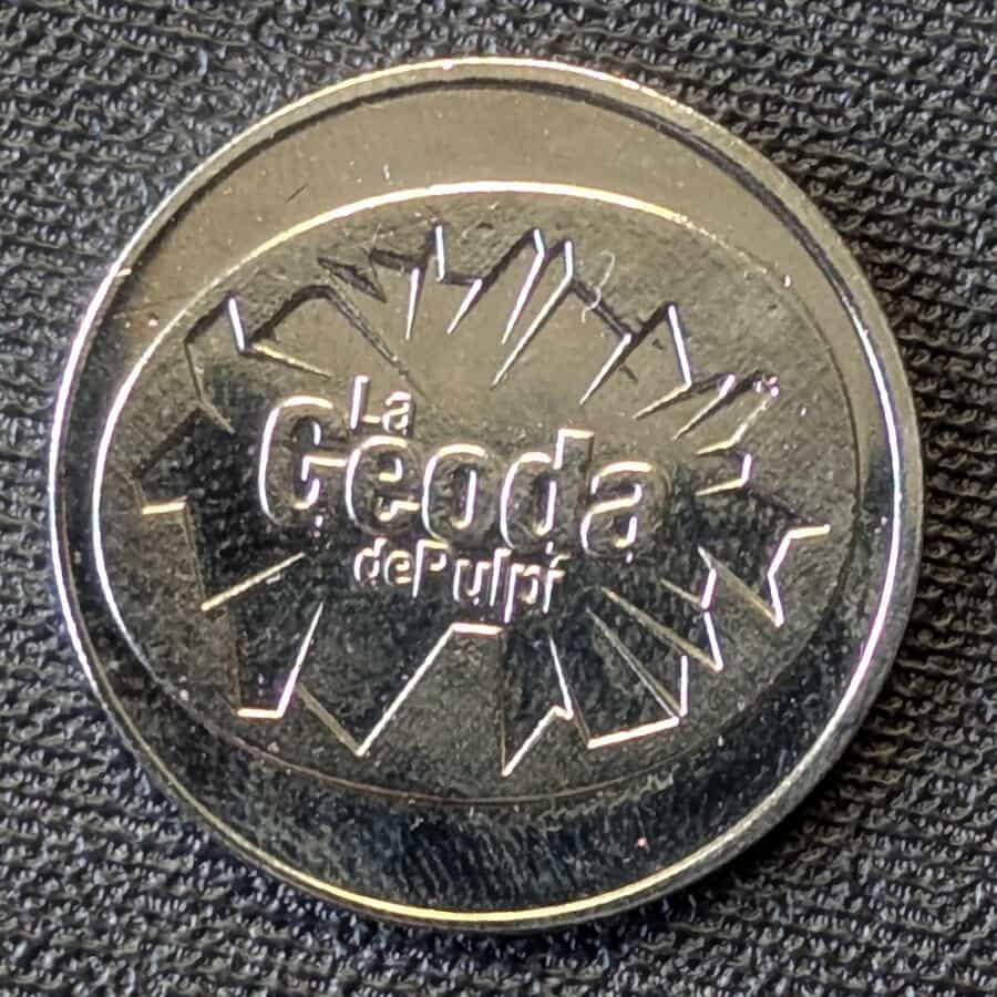Medalla de colección oficial, adquirida exclusivamente en la tienda del yacimiento de la Geoda de Pulpí (Almería). Una pieza de recuerdo (souvenir token) que rinde homenaje a la geoda visitable más grande del mundo. Acabado dorado o plata brillante. La tenemos disponible en dos colores.