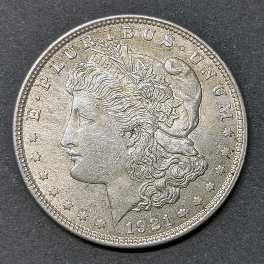 El año 1921 es especial porque marca el regreso y la despedida de este diseño. Tras suspenderse su acuñación en 1904, se volvieron a producir masivamente en 1921 para reponer las reservas federales tras la Ley Pittman, justo antes de ser sustituido por el «Peace Dollar» ese mismo año. Es una pieza histórica que cierra una era.