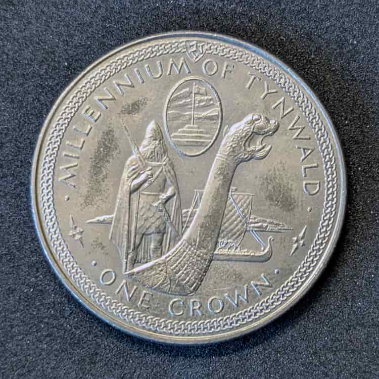 En 1979, la Isla de Man se volcó en la celebración de un hito histórico sin parangón: el 1000º aniversario de la fundación de su parlamento, el Tynwald. Para honrar este milenio, la ceca Pobjoy Mint emitió una maravillosa serie conmemorativa de cinco monedas de gran módulo (tamaño «Corona»), dedicadas a diferentes siglos de la riquísima historia insular.