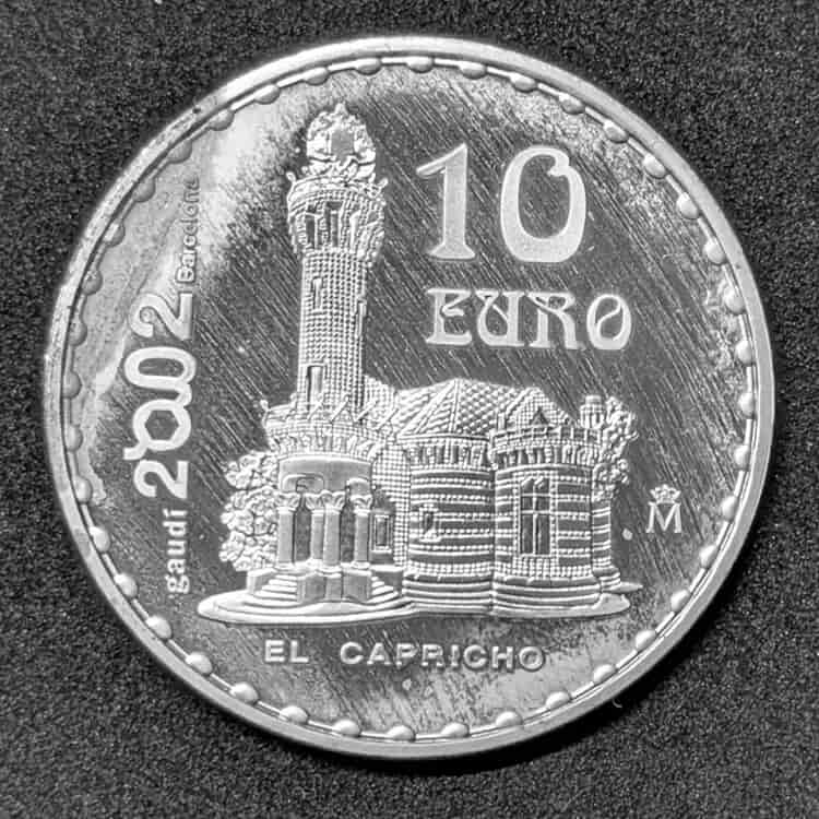 Notas curiosas para el coleccionista: ¿Sabías que «El Capricho» (cuyo nombre real es Villa Quijano) es uno de los escasos edificios diseñados por Gaudí fuera de Cataluña? Construido entre 1883 y 1885 en la localidad de Comillas (Cantabria), destaca por su estilo orientalista y su icónica decoración con azulejos de girasoles. Esta moneda es el broche de oro para cerrar la serie de plata de 10 euros de 2002 dedicada al genial arquitecto.