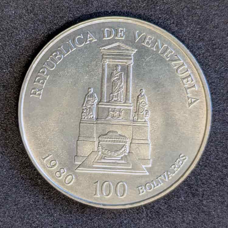 Moneda de 100 bolívares de Venezuela de 1980 (Simón Bolívar) – PLATA (900 milésimas)