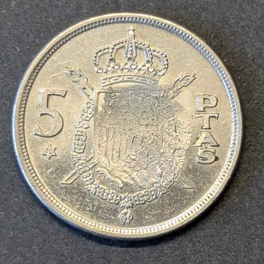 Moneda base: 5 Pesetas 1975 (Juan Carlos I).
