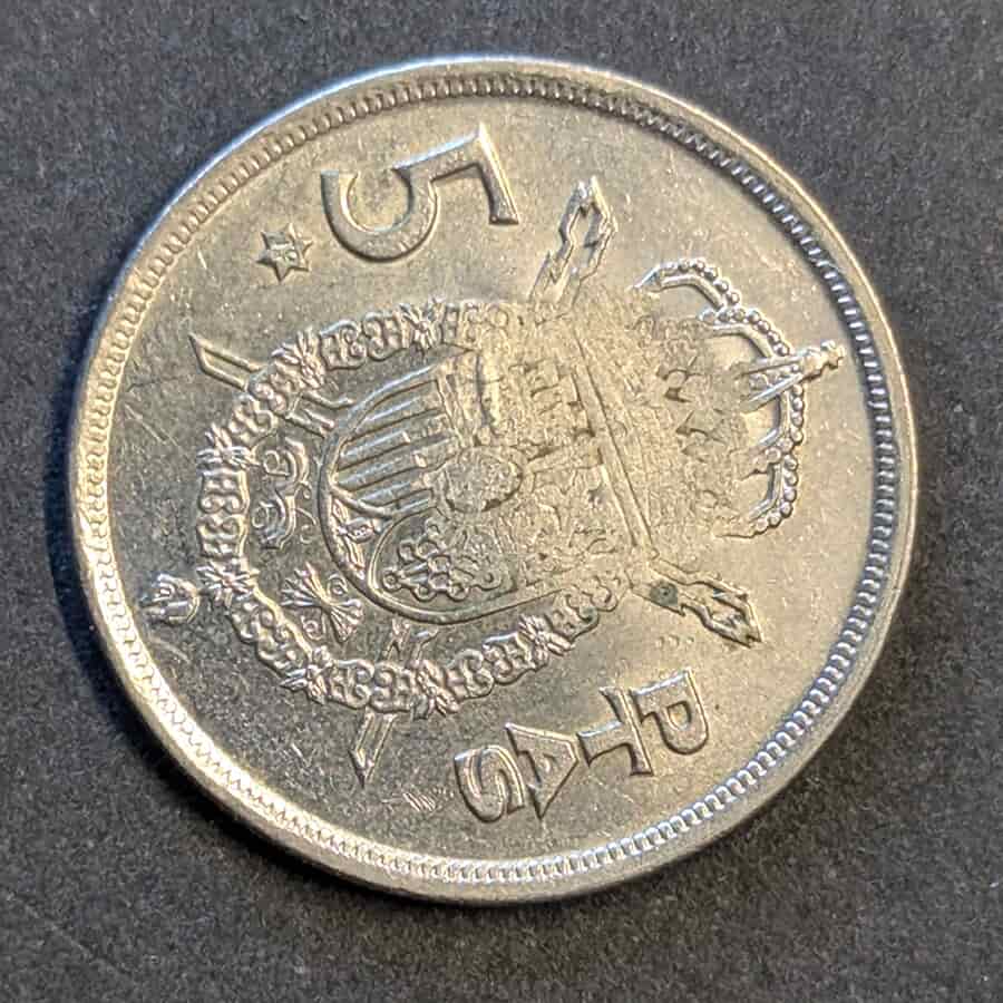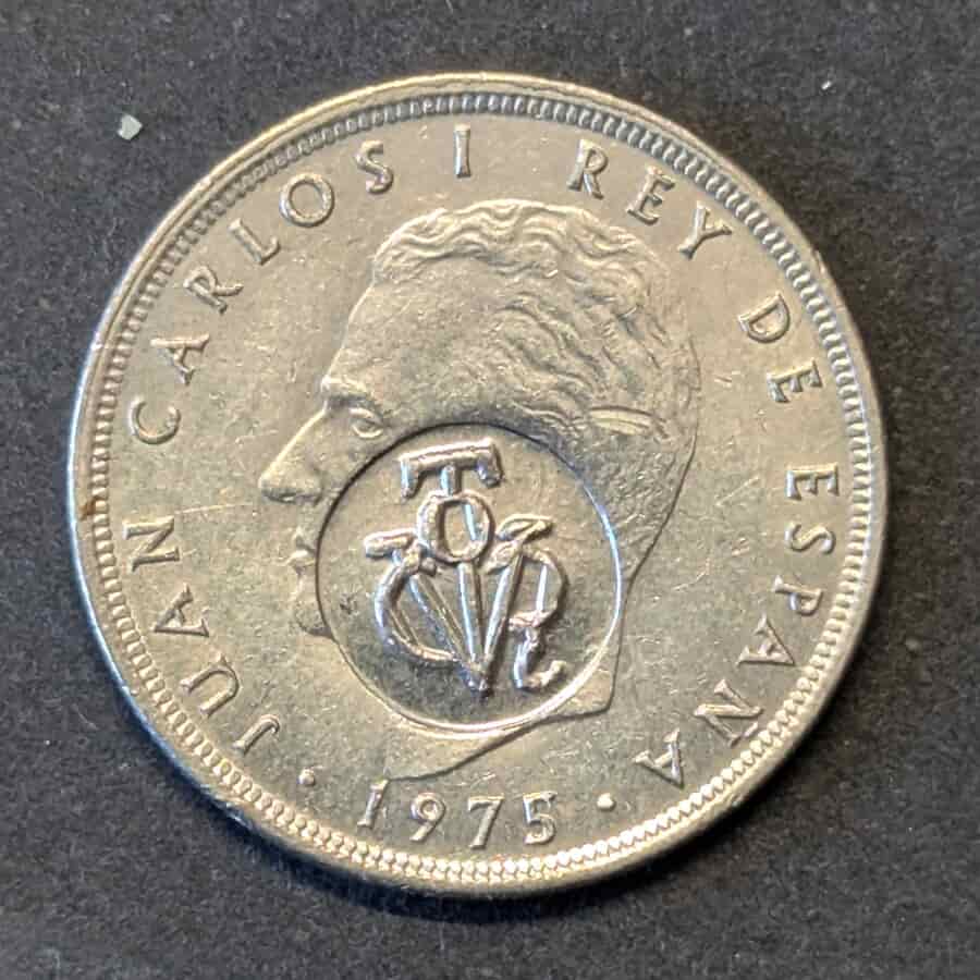 Moneda base: 5 Pesetas 1975 (Juan Carlos I).