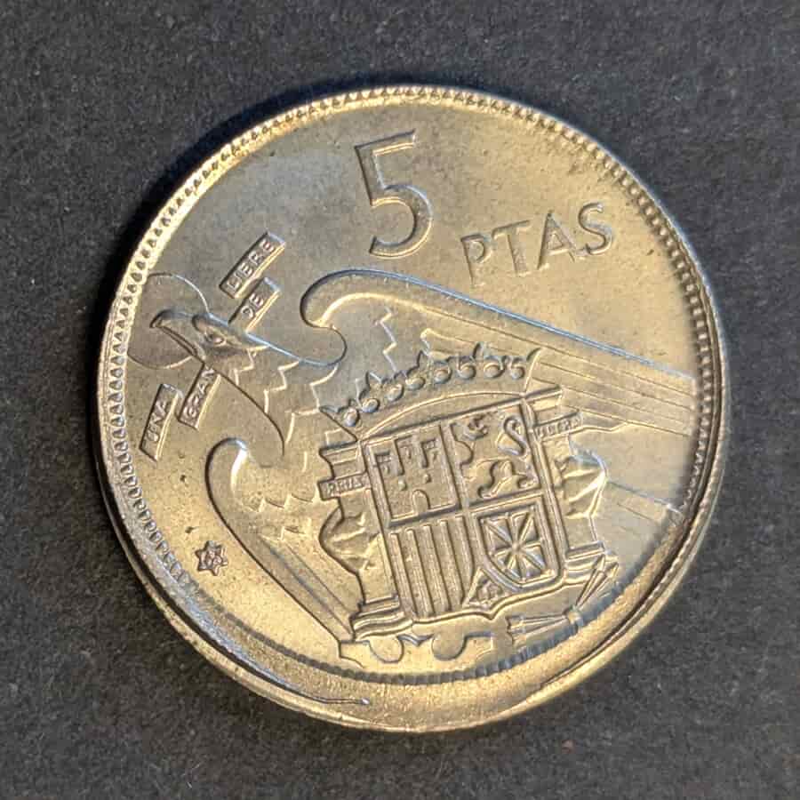 Moneda de 5 pesetas de Francisco Franco, 1957 (* 58) – El emblemático «Duro» del Estado Español (Error de acuñación)