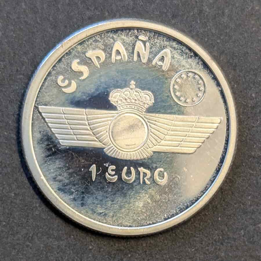 Esta hermosa pieza de 1997 forma parte de la serie dedicada a la Historia de la Aviación. Lo que la hace especial para el coleccionista es su denominación facial de 1 EURO, acuñada años antes de que la moneda única fuera una realidad física en España. Es un «eslabón perdido» entre la Peseta y el Euro.