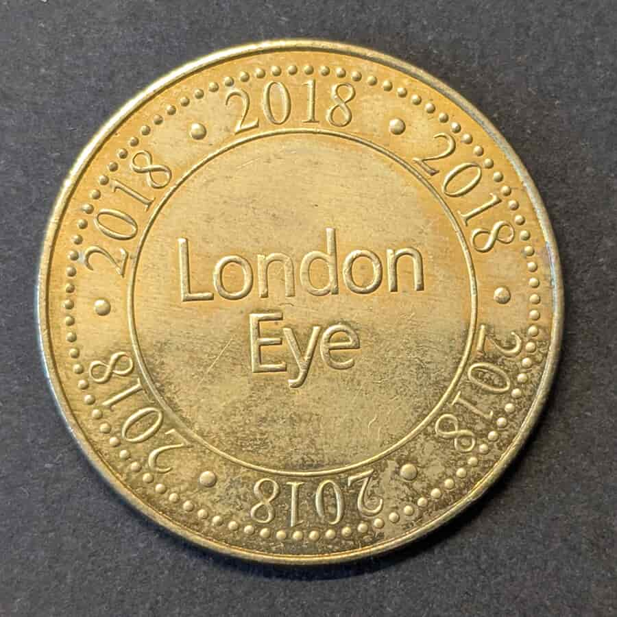 Contexto Histórico y Conceptual Esta medalla turística o «token» es un magnífico ejemplo de recuerdo moderno. Emitida específicamente en 2018, probablemente disponible en las tiendas de regalos de la famosa noria London Eye, la pieza actúa como una cápsula del tiempo de una visita a Londres. El diseño es un compendio de arquitectura londinense. Por una cara, el protagonismo textual es para el «London Eye» rodeado repetidamente por el año de emisión. Por la otra, un detallado tríptico en medallones circulares que muestra la «Santísima Trinidad» del turismo londinense: el Big Ben (la torre del reloj), el Tower Bridge (Puente de la Torre) y la cúpula de la Catedral de San Pablo (St. Paul’s).